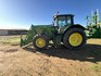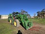 Command Quad Transmission, TLS Front axle suspension, Cab suspension, 3 x Mechanical rear remotes, Pressure, Return and load sense fittings, CAT 3 Hook linkage, Rear linkage and PTO controls on guards, 540/540E and 1000 RPM PTO, standard light package with 2 x LED driving lights at beltline, front and rear guards, Air operated seat, Instructors seat, UHF, Cd Player, John Deere 643R Loader, 3 Function, Mechanical Joystick, Loader suspension, Hayforks.